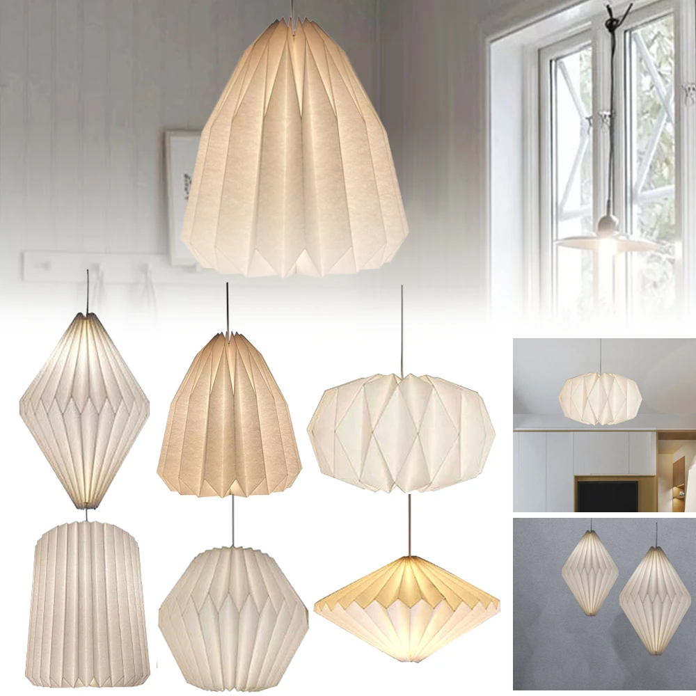 Nordic Creative Paper Origami Lantern Shade Foldable Hanging Pendant Light Art Decoration for Living Room Bedroom Dining Room